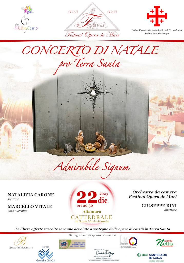 Concerto di Natale"Admirabile Signum"Pro Terra Santa22 dicembre 2023 ore 20:30Cattedrale di Altamura